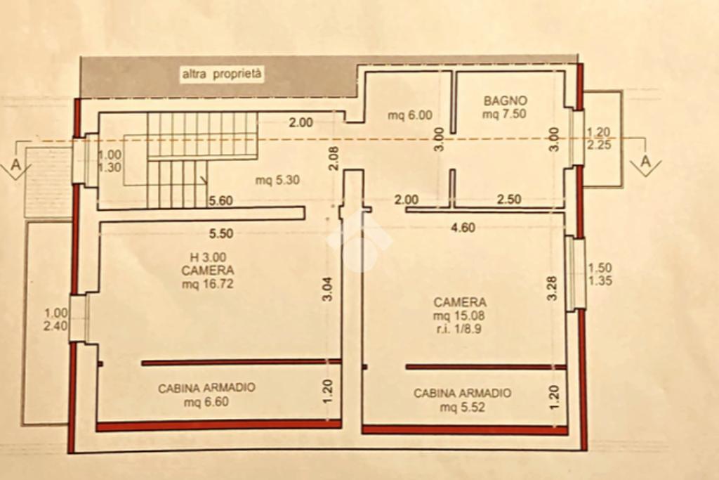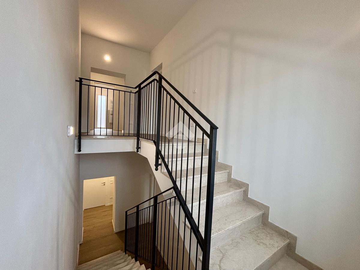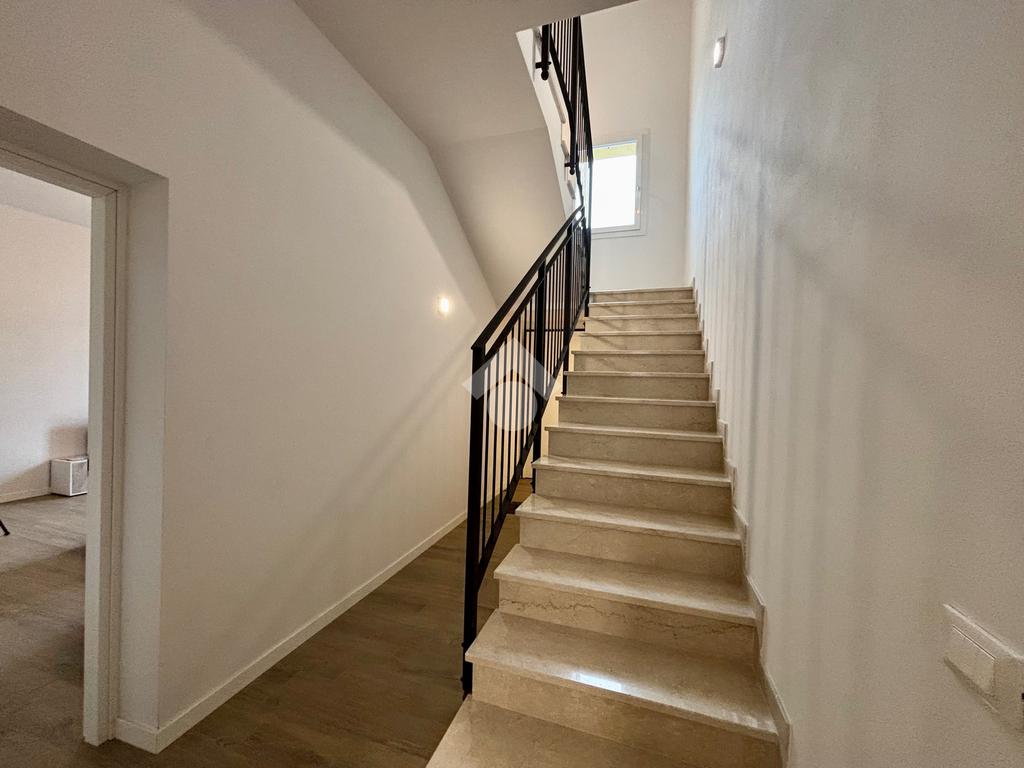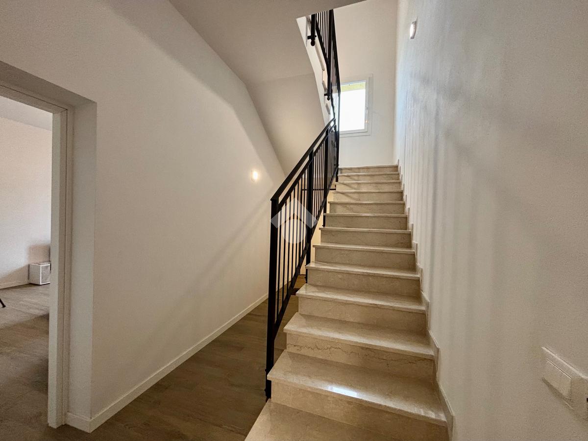 Salendo al piano primo troviamo due ampie camere matrimoniali una delle quali con sfogo sul balcone e un servizio finestrato con doccia anch'esso con sfogo esterno su un ulteriore balcone.