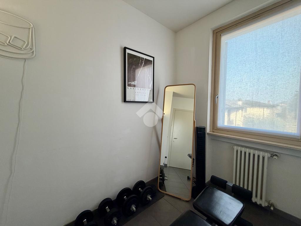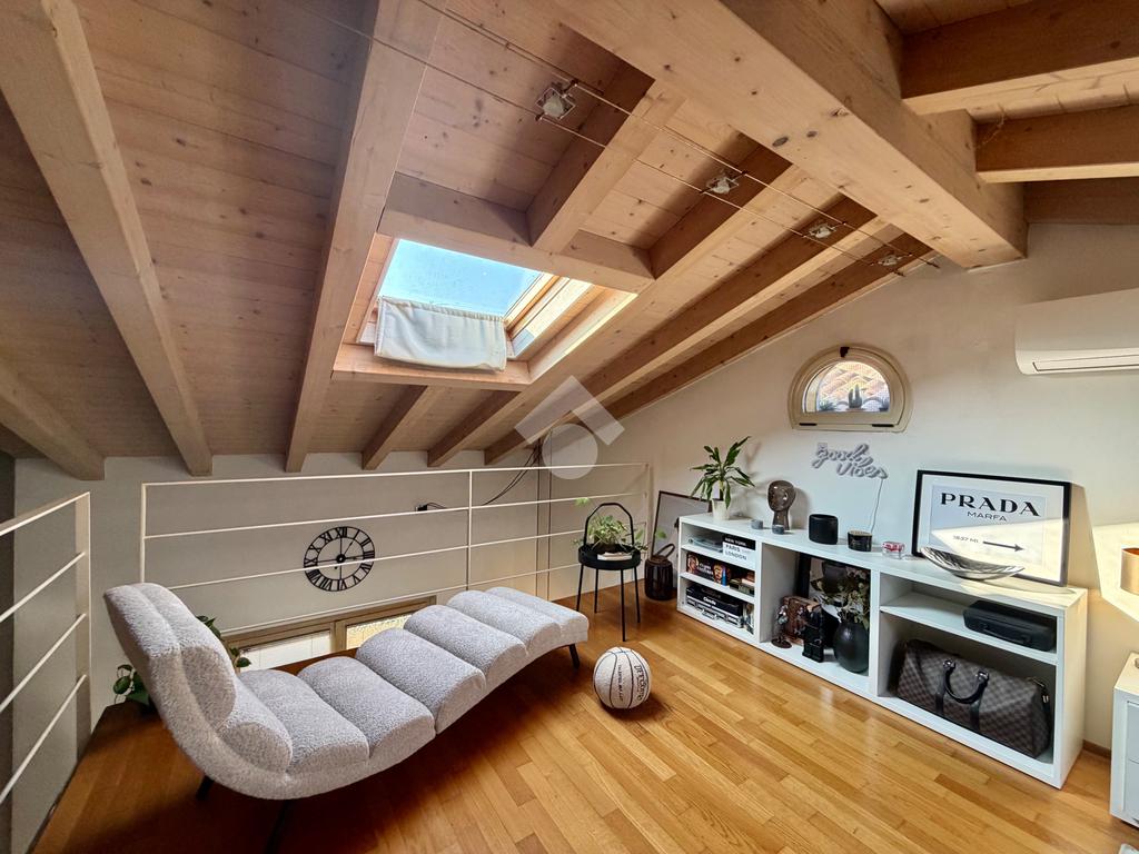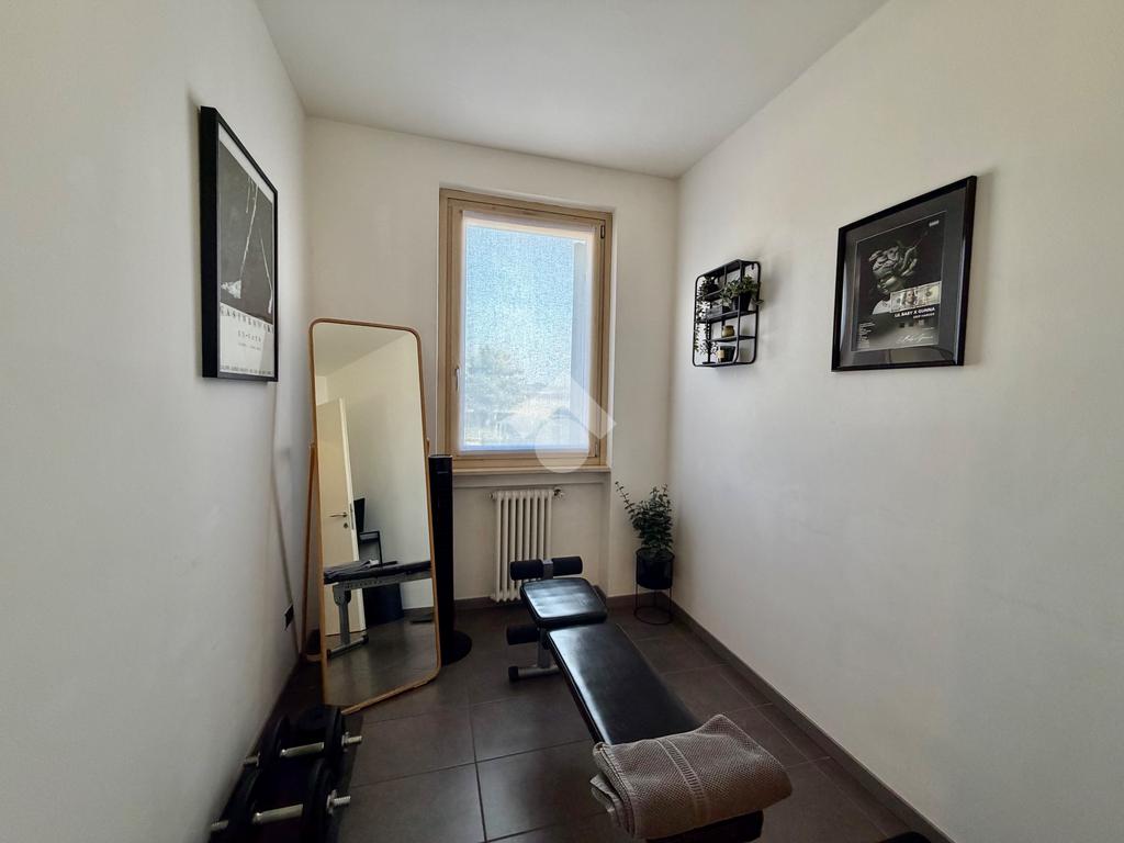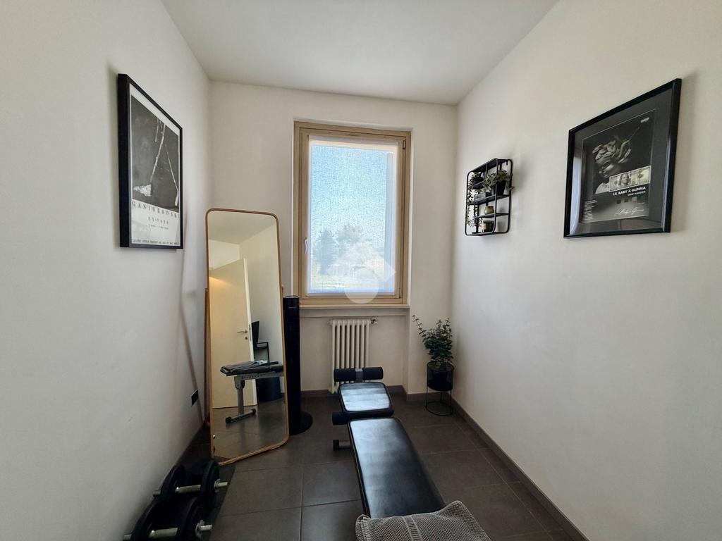 Al piano principale troviamo un ampio soggiorno con cucina open space che affacciano direttamente sul terrazzo, nella zona notte troviamo un locale adibito a palestra e un serivzio finestrato con doccia.