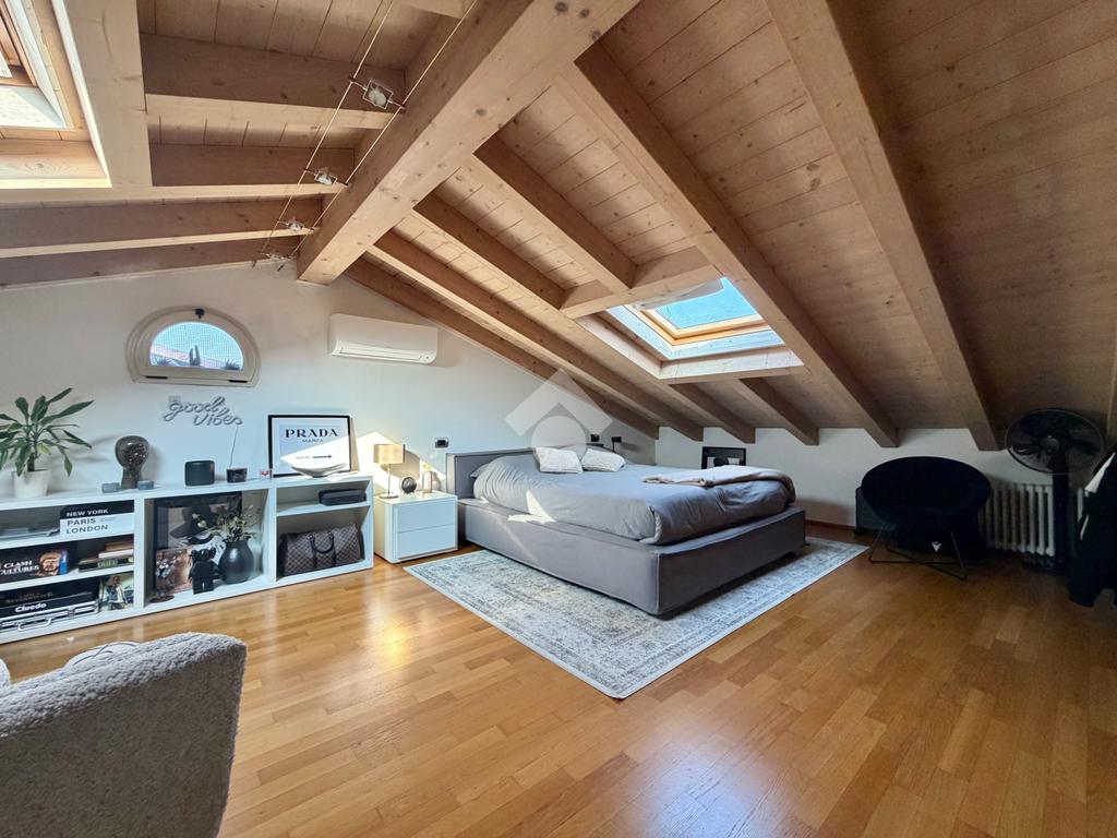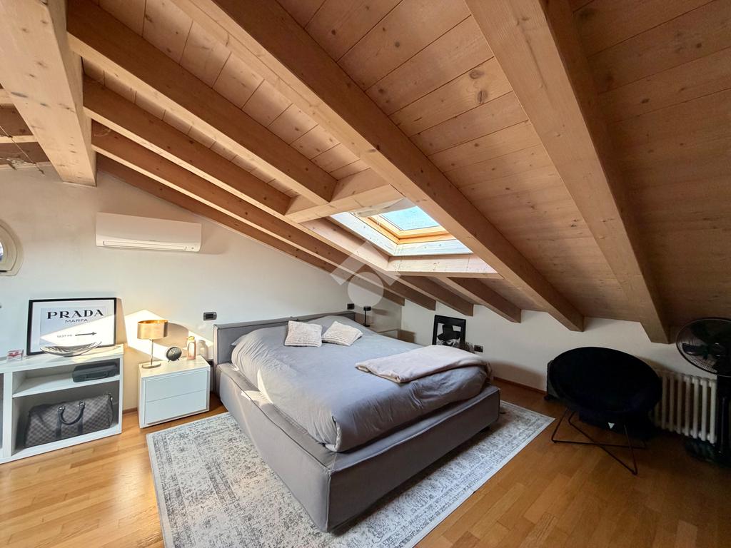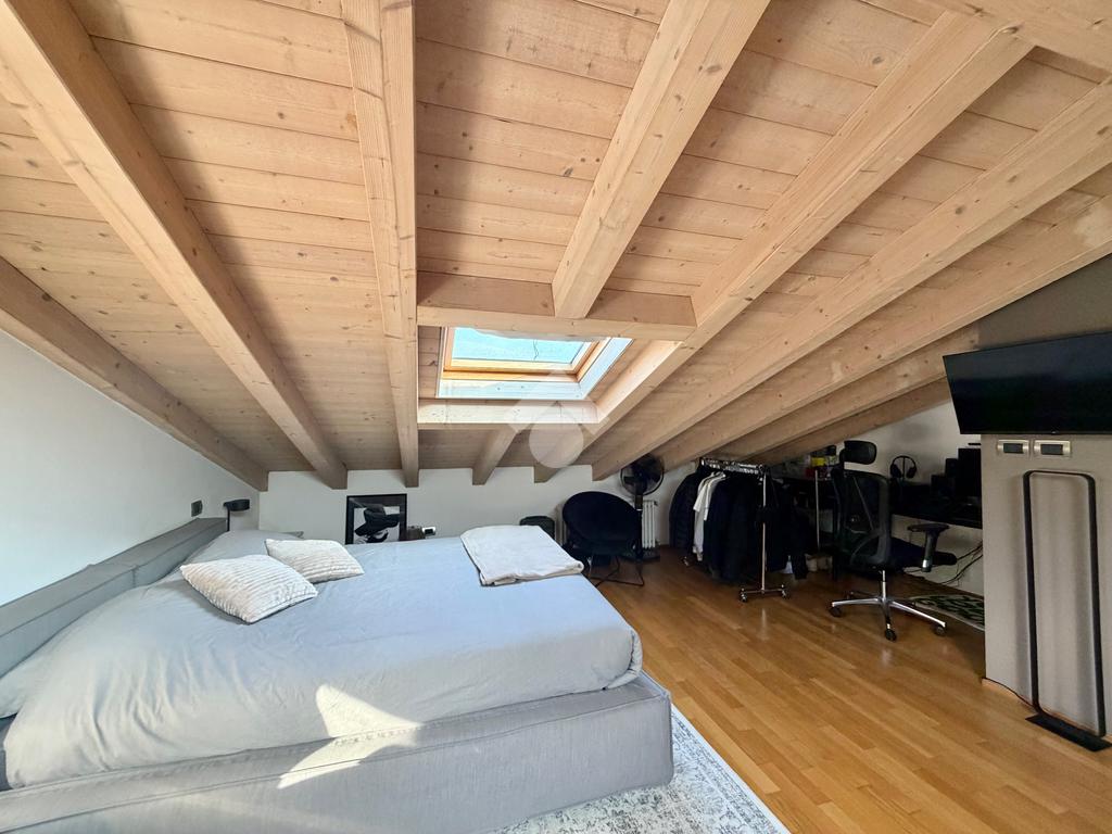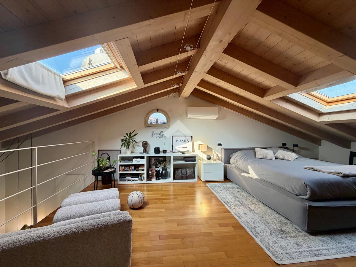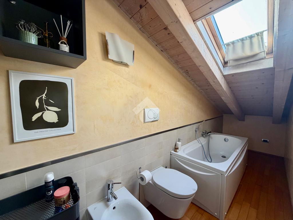 Salendo, troviamo una camera matrimoniale molto luminosa grazie al velux e un servizio cieco con vasca. Completa il tutto un box doppio.