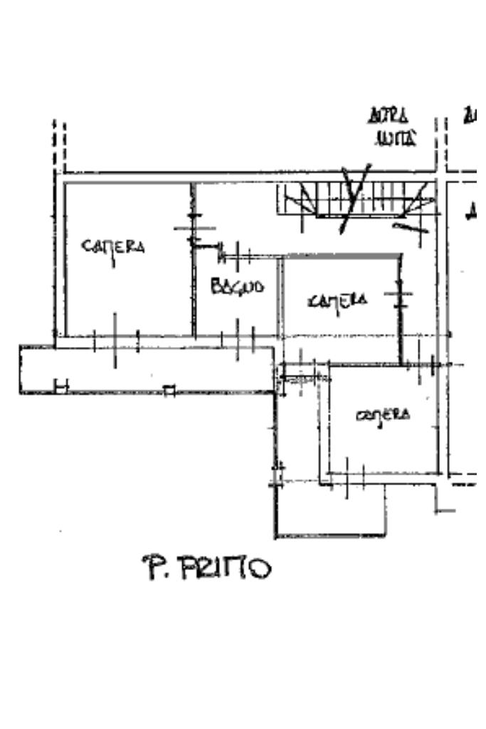 Salendo al piano primo troviamo due camere da letto matrimoniali di generose dimesioni che affacciano su un balcone, una camera doppia e un servizio finestrato con vasca.
